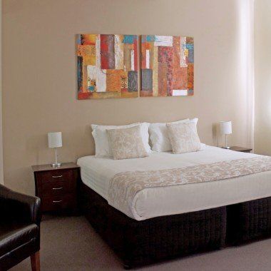 All Balcony On Sixth Lodge suites include: reverse-cycle air conditioning, ceiling fans, bedside tables with lamps, access to a large balcony overlooking the Murraylands.