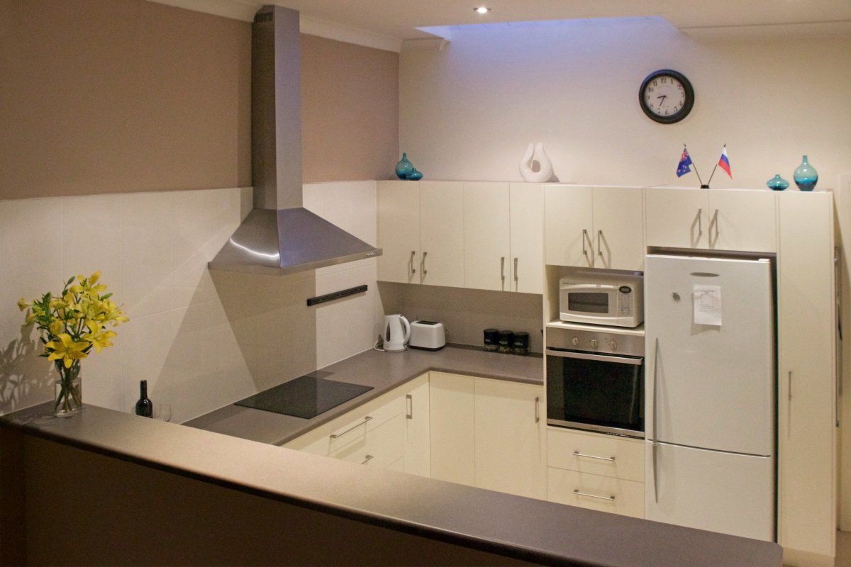 Fully equipped kitchen with full sized fridge/freezer, oven and separate stove top, microwave, dishwasher, filtered water and ample bench and cupboard space