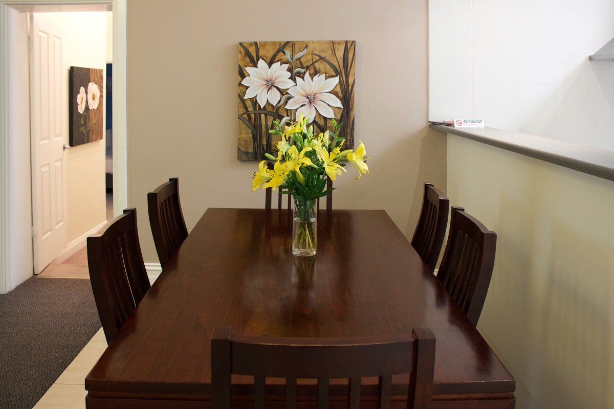 This suite features a fully equipped kitchen with a full-sized fridge/freezer, oven, separate stovetop, microwave, dishwasher, filtered water, and generous bench and cupboard space. A stylish six-seater dining table makes shared meals effortless. Each room includes free Wi-Fi and a mini bar stocked with locally sourced selections, while the spa-inspired bathroom offers a relaxing retreat after a busy day.